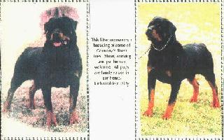 Rottweiler's are one of the most popular breeds in the United States. Sire: Parishs Mr Augusta Grunt is from the Stolzenfels background.. This can be found in the book "The World Of Rottweilers". Dam: TNT'S Taylor V Brando comes from Germanys finest lines. Her sire was imported into the United States.. She also has National and International Champions in bloodlines. | ||||||||||||||||